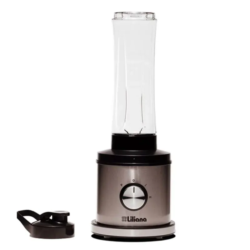 Licuadora de 1 litro con tapa hermética que permite añadir ingredientes sin detener el equipo.