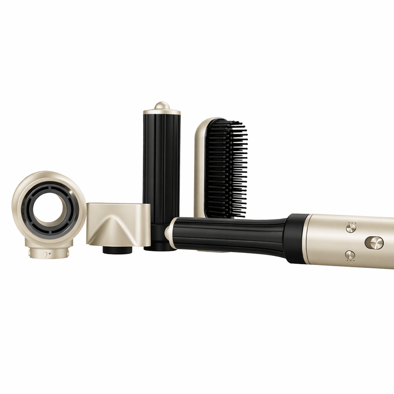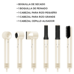 - 5 accesorios intercambiables: boquilla de secado, boquilla de peinado, cepillo alisador, cabezal para rizo grande y pequeño, para lograr cualquier estilo.