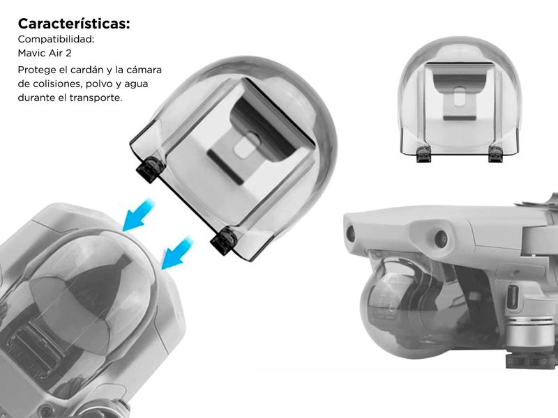 Protege el cardán y la cámara de colisiones, polvo y agua durante el transporte.