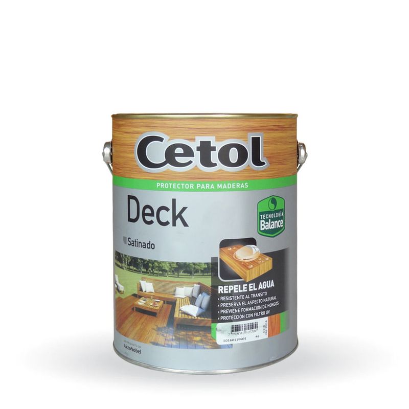 PROTECTOR PARA MADERAS CETOL DECK BALANCE - AKZO NOBEl se diferencia de barnices y productos usados tradicionalmente en las maderas por no ampollarse, descascararse ni cuartearse. La tecnología Balance ofrece una alta performance que, de forma práctica, con su bajo olor, ausencia de aguarrás y rápido secado hace las cosas más fáciles. Su película microporosa con aditivos especiales, permite que Cetol penetre profundamente en la madera, dejando que respire su propia humedad y al mismo tiempo deja la superficie totalmente impermeable a la lluvia. Es ideal para exteriores, evitando la formación de algas y hongos.