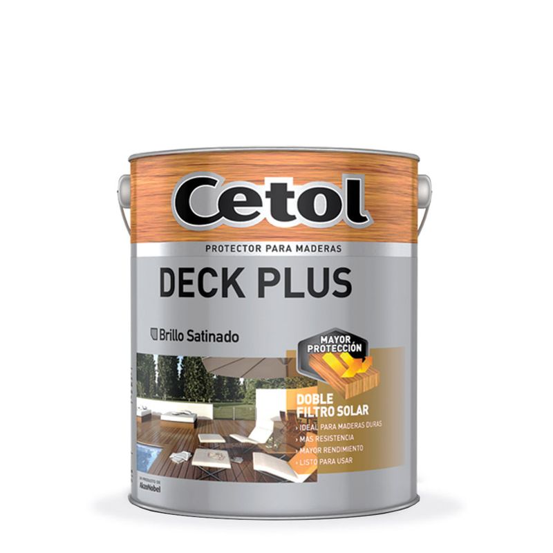 PROTECTOR PARA MADERAS CETOL DECK PLUS - AKZO NOBEL. Recubrimiento especial de alto desempeño y durabilidad para maderas exteriores. Especialmente desarrollado para ser aplicado tanto en decks de piscinas como en toda otra cubierta de madera horizontal en exteriores. Su exclusiva formulación permite que penetre profundamente en la madera y que sus aditivos especiales repelan el agua de lluvia, sin impedir que la madera respire su propia humedad, evitando así la formación de hongos. Elevada dureza y resistencia al tránsito. Sus filtros UV potenciados le brindan extra protección contra la degradación ocasionada por la radiación ultravioleta, una de las principales fuentes de destrucción de la madera. Cetol Deck Plus asegura una excelente conservación de las propiedades naturales de la madera, con bajo costo de mantenimiento porque no se descascara, ampolla ni cuartea.