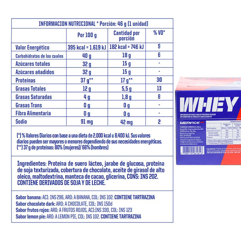 Protein Bar 46gr x12 Sabor: Lemon Pie Mervick Lab