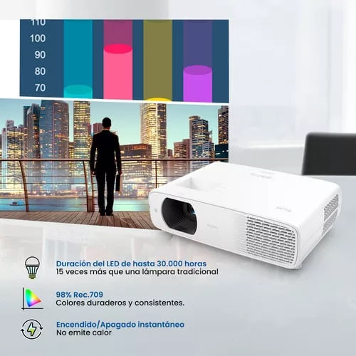 El proyector LED LH730 ofrece un brillo de 4,000 lúmenes para presentaciones en salas de conferencias medianas iluminadas. Aprovechando la cobertura de color Rec.709 del 98% y el efecto H-K, el LH730 ofrece una mayor saturación de color que representa fielmente las presentaciones de reuniones con texto claro e imágenes vívidas.