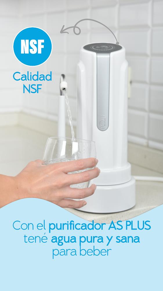 Olvidate de las botellas plásticas y de hervir agua. El AS PLUS purifica el agua al instante, asegurando comodidad y seguridad en cada vaso.