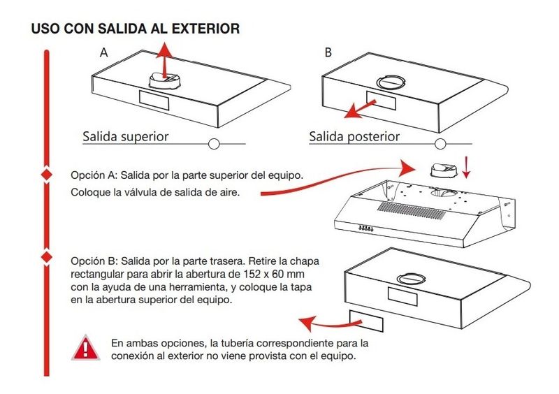 · Adaptable con o sin salida al exterior (*EL PRODUCTO NO INCLUYE NI SE LE PUEDE AGREGAR FILTRO DE CARBÓN ACTIVADO)