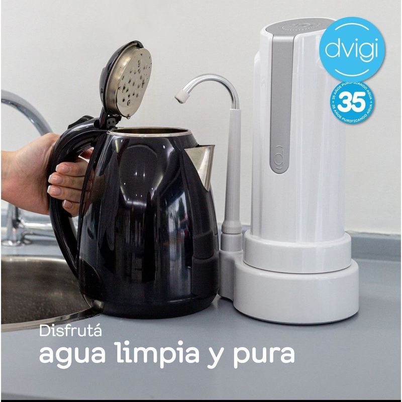 El purificador AS Plus de DVIGI remueve arsénico, metales pesados, cloro, bacterias y más, en solo 4 etapas. Apto para uso en zonas con agua contaminada, ofrece hasta 14.000L de agua pura, instalación sobre mesada sin plomería y diseño elegante para cualquier cocina.