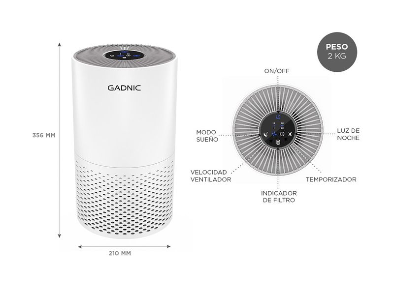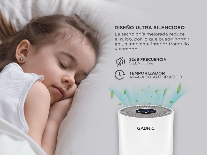 GADNIC presenta su nueva línea de purificadores! La mala calidad del aire ingresa a su sistema de respiración y es especialmente dañino para las personas mayores, embarazadas, niños, mascotas y personas con enfermedades alérgicas o respiratorias. Filtra el 99.97% de polvo, polen, humo, etc. Este purificador de aire filtra partículas tan pequeñas como 0.3 micrones y más grandes, lo que ayuda a mejorar la calidad del aire. Gadnic Mejorar su vida! Disfruta de la vida al máximo con OZ600. Comprometidos con la creación de purificadores de aire eficientes y de ahorro energético, ponemos a los usuarios en el centro de nuestras decisiones y diseñamos productos que respondan a las necesidades de la vida y le ayudan a aprovechar al máximo sus actividades diarias. Diseño ultra silencioso. La tecnología mejorada reduce el ruido, por lo que puede dormir en un ambiente interior tranquilo y cómodo. Lo mejor de todo, es que ¡NO NECESITA MANTENIMIENTO ALGUNO!