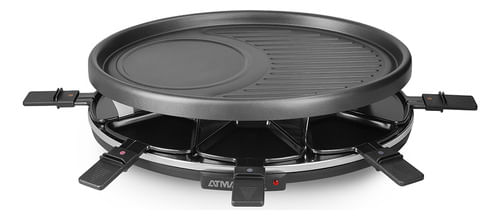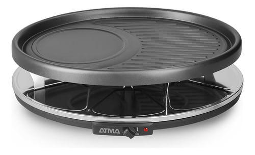 Racletera ATMA RA918, tu aliada perfecta para crear momentos memorables alrededor de la mesa. Diseñada para satisfacer las necesidades de hasta 8 personas, esta Racletera viene equipada con 8 sartenes individuales ideales para gratinar una variedad de platos deliciosos.