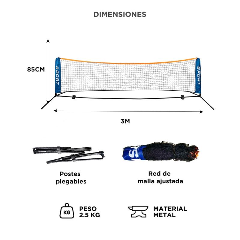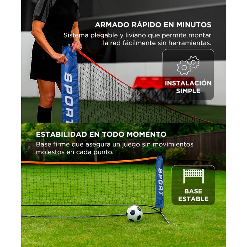 La red se coloca en una estructura de Acero la cual tiene patas en su costado haciendo que no pierda el balance. Cuenta con dos pesos que permiten un mayor soporte pero como adicional agregamos 6 Estacas de metal. Las mismas pueden ser utilizar para re afirmar la estructura o para fijar la soga delimitadora al suelo. Realmente es un kit ideal para pasar el rato en familia o con amigos.