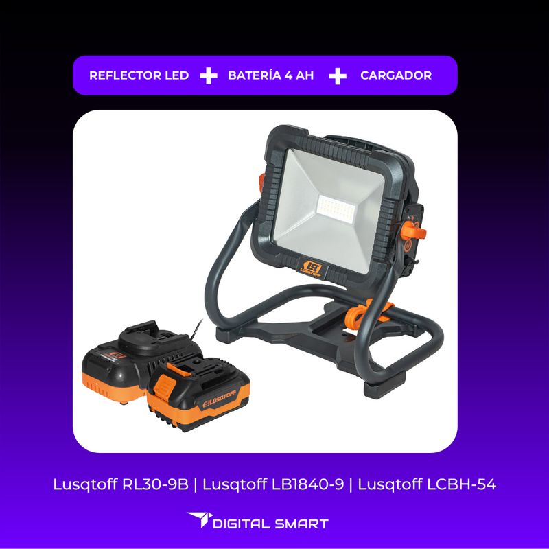 El Reflector LED a batería Lusqtoff RL30-9B es una herramienta potente y versátil, ideal para iluminar obras, exteriores, campamentos o espacios sin acceso directo a la red eléctrica. Su LED SMD de 30 W ofrece un haz uniforme y brillante, con un flujo luminoso máximo de 2200 lúmenes, perfecto para tareas de trabajo o recreación.