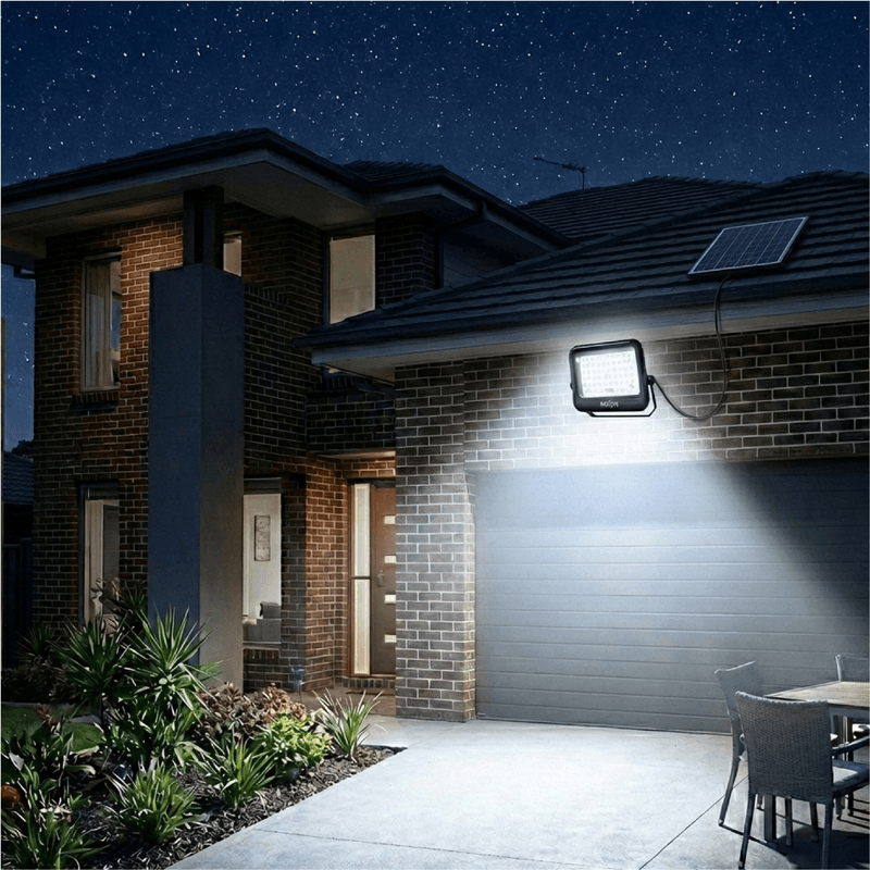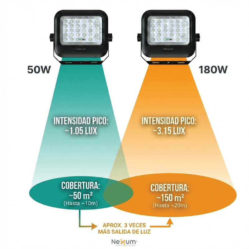 El primer reflector solar que NO se apaga a mitad de la noche. Gracias a su Chip Inteligente, gestiona la energía para garantizar luz fría (6500K) hasta el amanecer. Disponible en dos potencias 50W y 180W con panel separado para maximizar la carga solar.