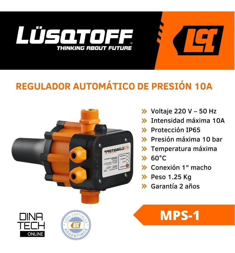El MPS-1 es un regulador de presión automático de 10 A de Lusqtoff. Está fabricado con una protección IP65, lo que significa que está equipado con la mejor protección posible contra los elementos. Si quiere mantener la presión del agua a un nivel constante, ¡ésta es la herramienta que necesita!