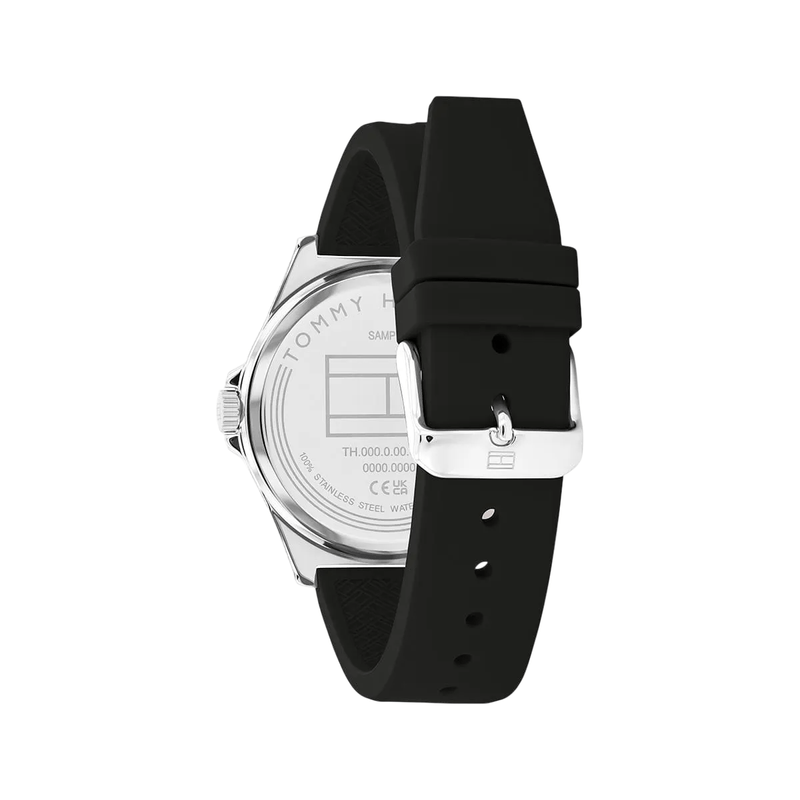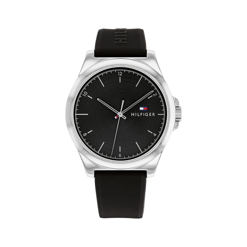 Reloj Analógico Tommy Hilfiger - Caja Cuarzo Gris Esfera Negra Malla Silicona (Rth0764)