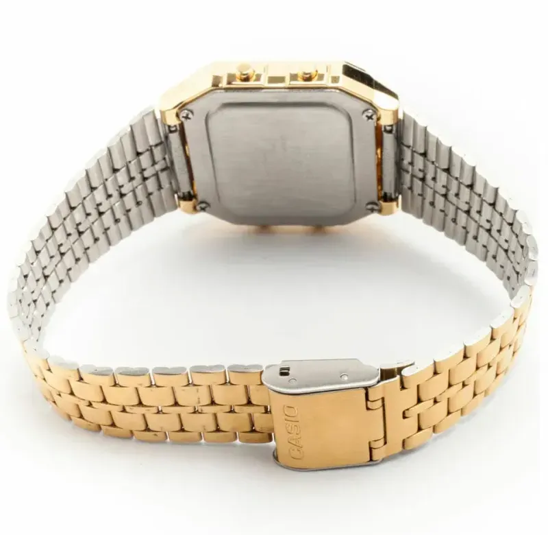 Reloj Casio digital combina un diseño clásico y elegante con múltiples funciones prácticas para el uso diario. Su estilo unisex presenta terminaciones doradas en caja, bisel y malla, logrando un look moderno y atemporal ideal para cualquier ocasión.