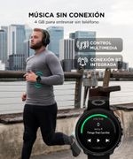 4GB de almacenamiento para música sin conexión y compatibilidad con smartphone. Controlá notificaciones y multimedia directamente desde la muñeca.