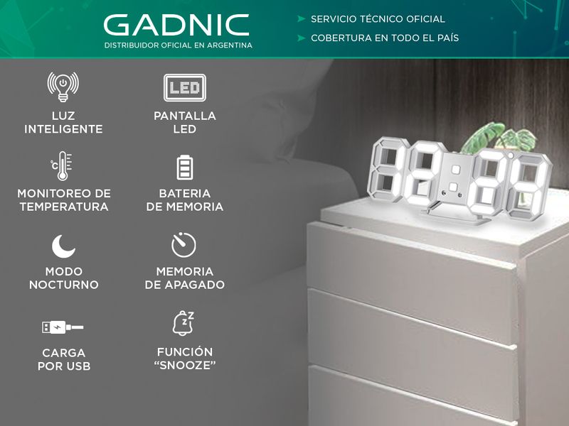 Acerca de Reloj Despertador Digital Gadnic ALARM-10 Números 3D Luz Led