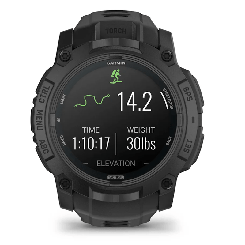 Las funciones tácticas dedicadas incluyen una actividad de maestro de salto, proyección de puntos de referencia, formato GPS de posición dual, actividad táctica precargada, modo sigiloso, interruptor de seguridad y actividad de marcha.