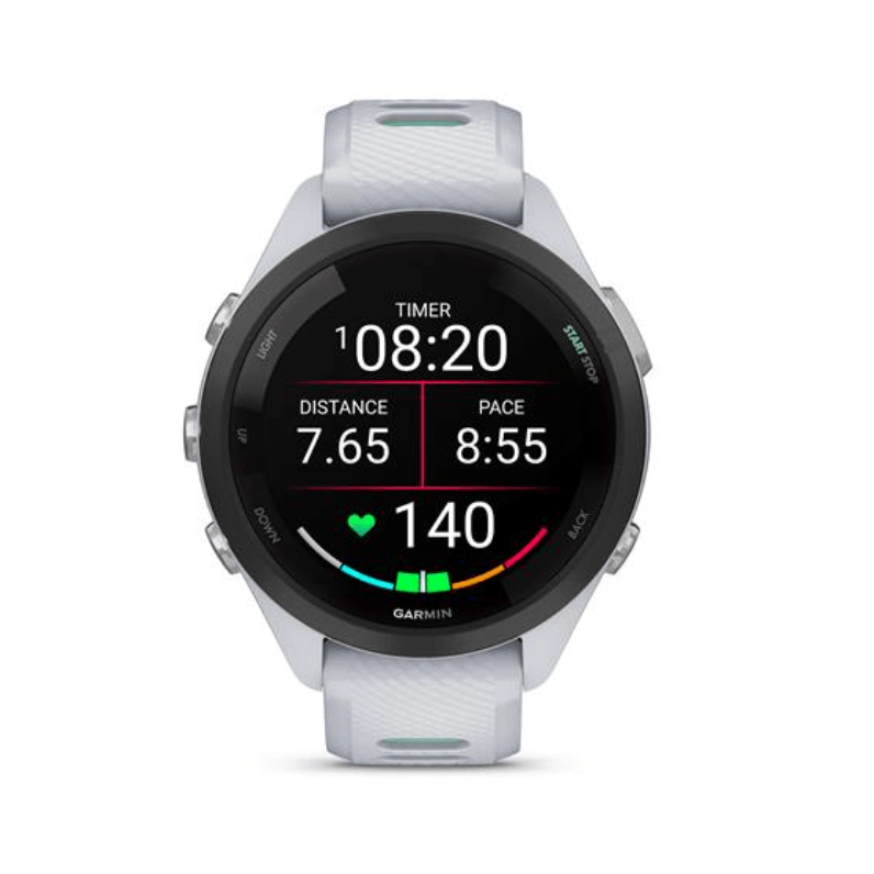 El Garmin Forerunner 265S es un smartwatch compacto con pantalla táctil AMOLED de 1.1" y protección Gorilla Glass 3, ideal para deportistas que buscan alto rendimiento. Compatible con Android e iOS, monitorea frecuencia cardíaca, SpO2, sueño, estrés y más. Incluye GNSS, Garmin Pay, control de música y notificaciones inteligentes. Resistente al agua (5 ATM) y con batería de hasta 15 días. Perfecto para un estilo de vida activo.
