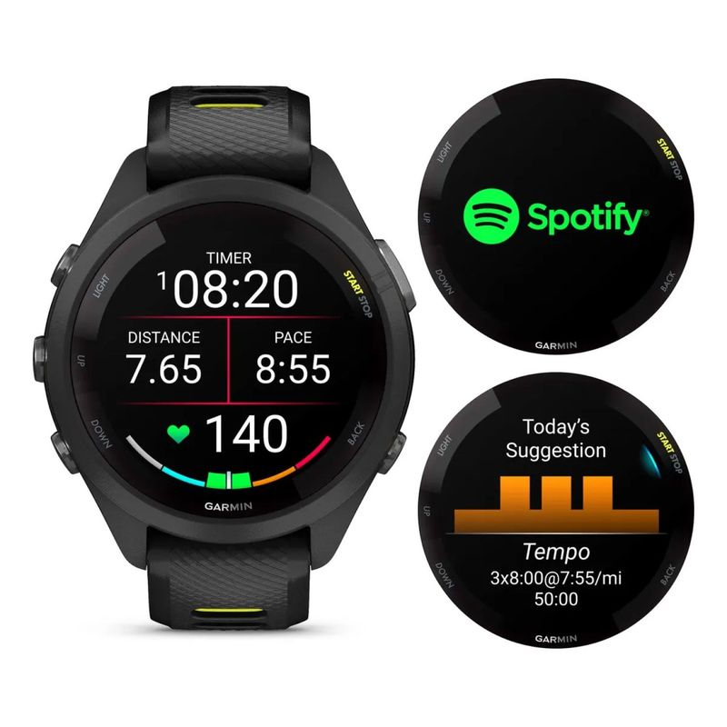 • Funciones adicionales: Métricas de running avanzadas, entrenamiento diario sugerido, VO2 Max, Body Battery, seguimiento del sueño