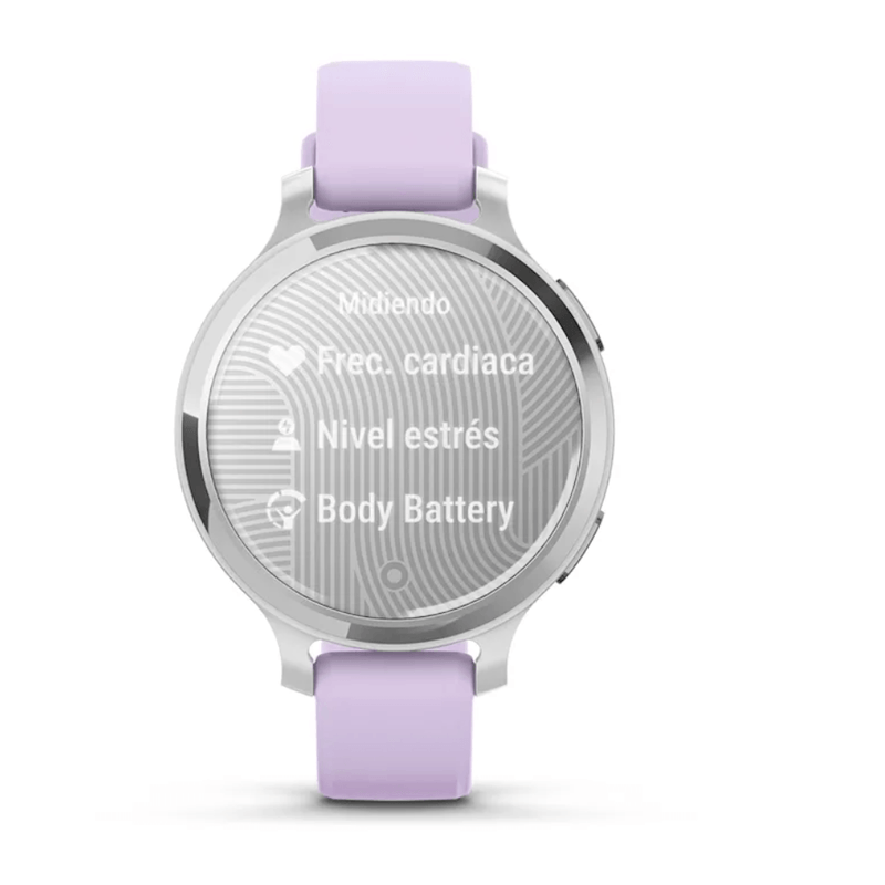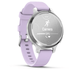 Reloj inteligente Garmin Lily® 2 Active, pequeño y elegante, GPS integrado, pantalla oculta, lente estampada, batería de hasta 9 días de duración, plateado con correa de silicona jazmín morada