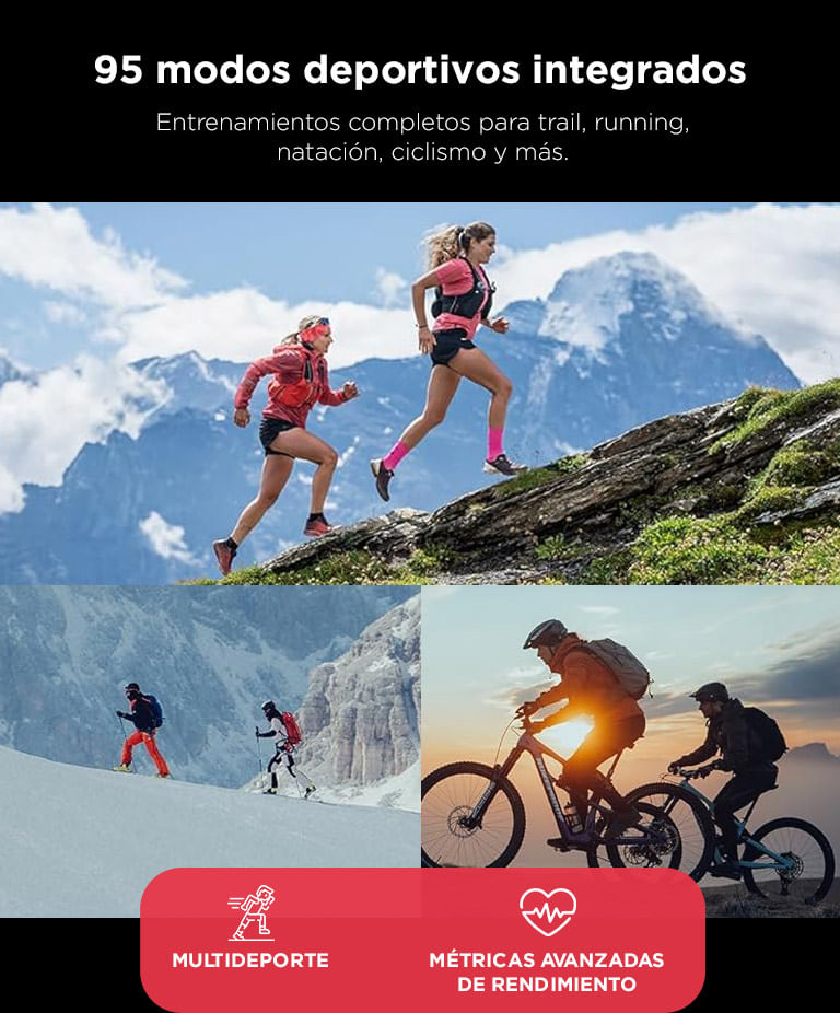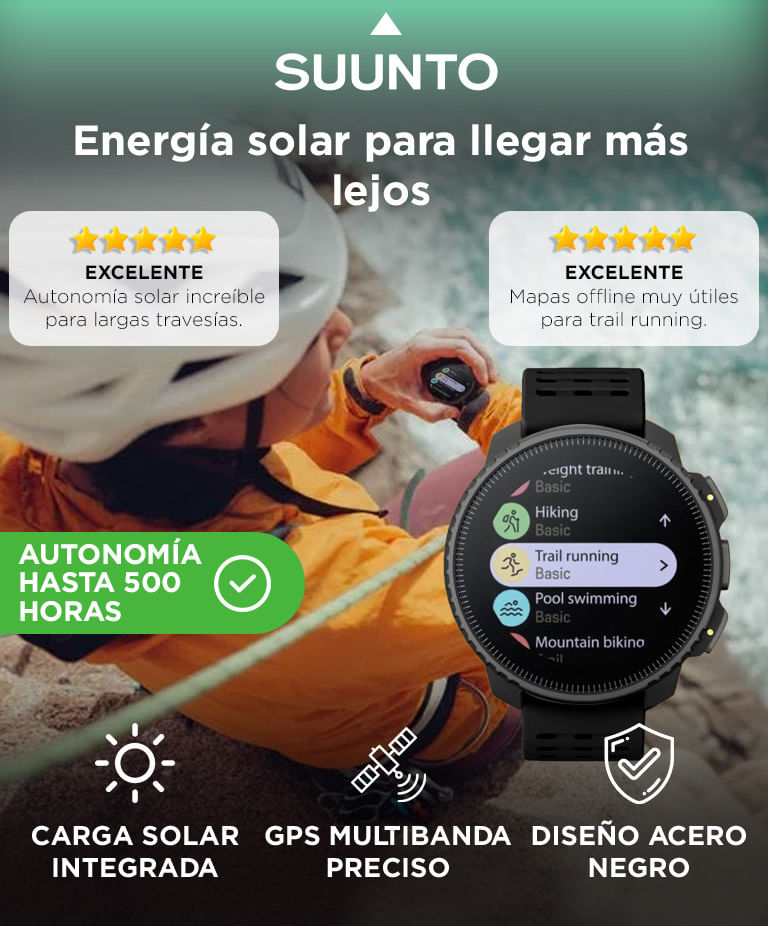 Más de 95 modos deportivos, medición de pulso, SpO? y sincronización con la app Suunto.