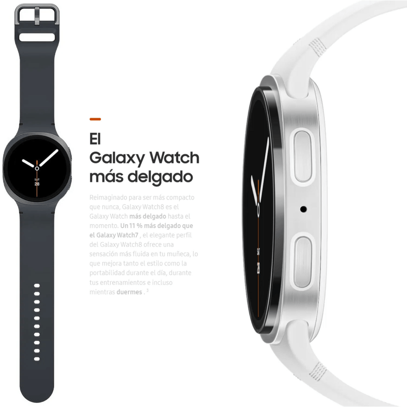 El Samsung Galaxy Watch 8 44 mm ofrece diseño elegante, pantalla Super AMOLED de 1.5" con cristal de zafiro y alto brillo, impulsado por el potente Exynos W1000 y Wear OS 6. Incorpora funciones avanzadas con IA para salud, deporte y bienestar, GPS multibanda y batería de larga duración, ideal para quienes buscan conectividad y rendimiento.