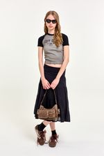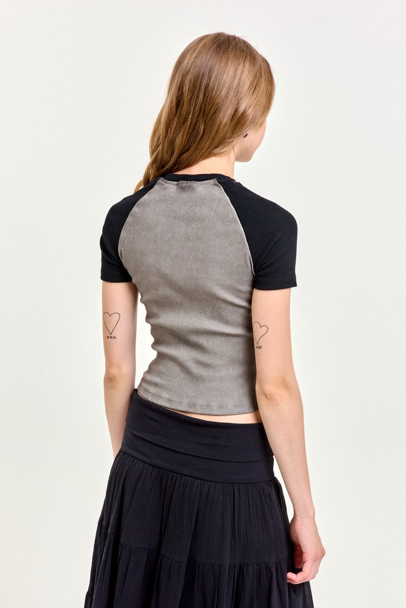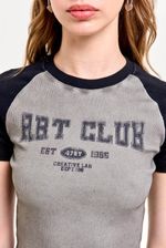 Remera de morley con mangas y cuello a contratono, y estampa al frente. Cada prenda tiene un acabado único gracias a su proceso de teñido artesanal, puede variar ligeramente en cada prenda, lo que le aporta textura y un look personalizado. Ideal para usar con un short de jean o una falda tableada.