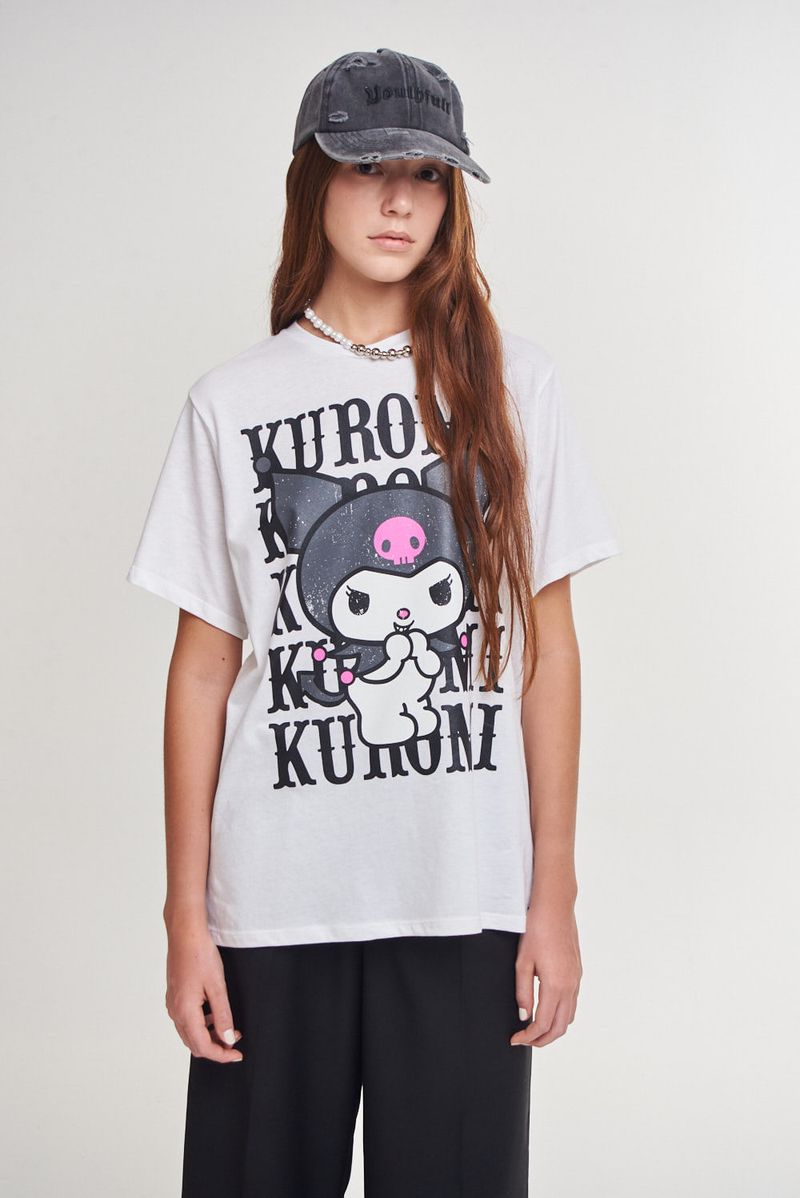 Remera manga corta de jersey liviano con cuello aplicado de ribb. Cuello redondo. Estampa centrada en frente con personaje de Sanrio. Largo por debajo de la cintura. Grifa institucional en ruedo izquierdo.