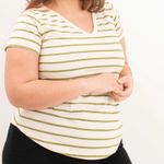 Remera de jersey algodón rayada escote V- Lena verde