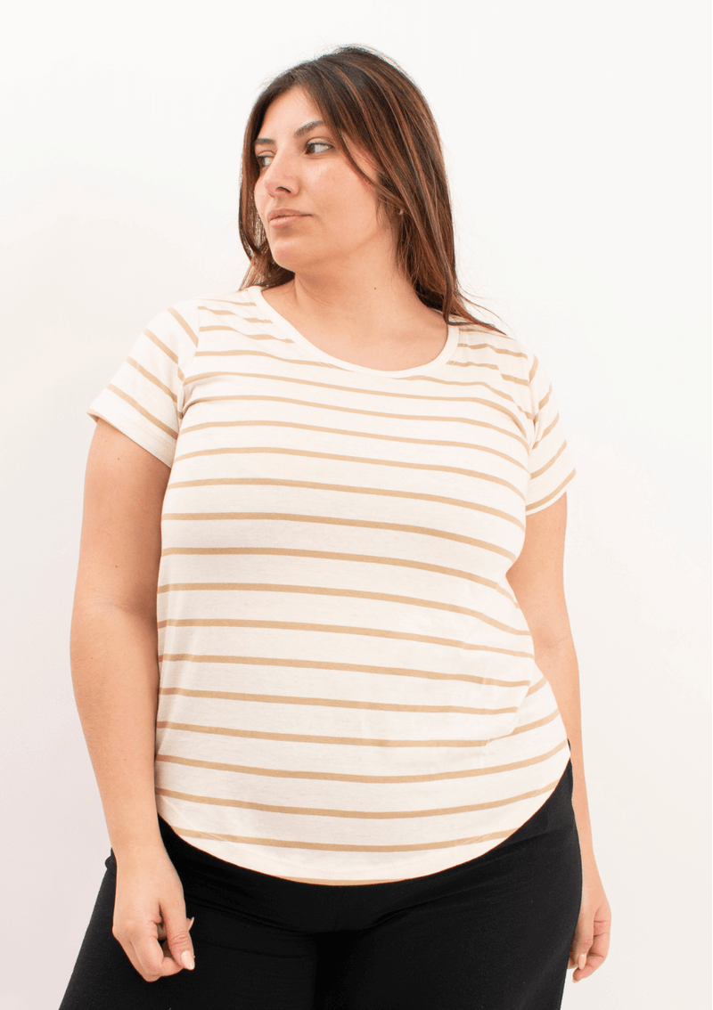 Remera de jersey algodón rayada - Lena beige
