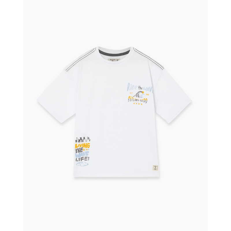 Remera manga corta confeccionada en algodón. Posee estampa en frente especialmente diseñada para esta colección. Calce amplio. De estilo surfero es ideal para completar tus outfits este verano.