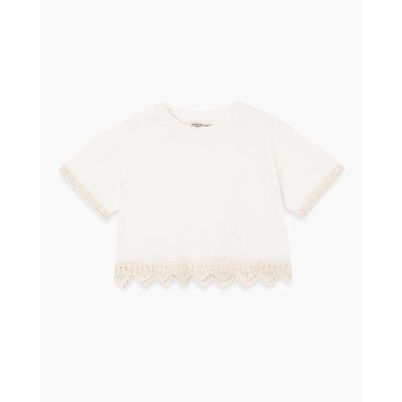 - Cuello redondo - Calce over corta - Puntillas de algodón - Jersey flame 100% algodón