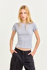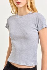 Remera manga corta lisa escote redondo de morley viscosa. Largo a la cadera y etiqueta en ruedo.