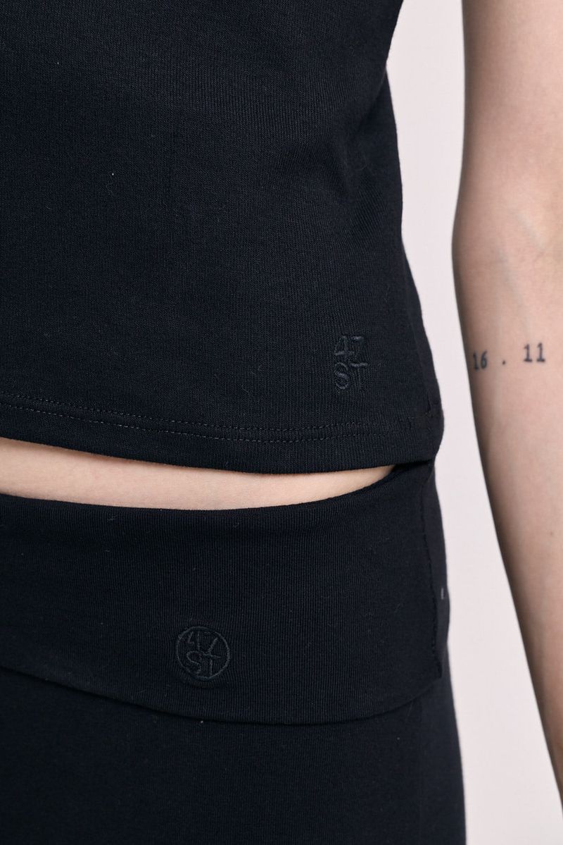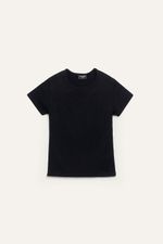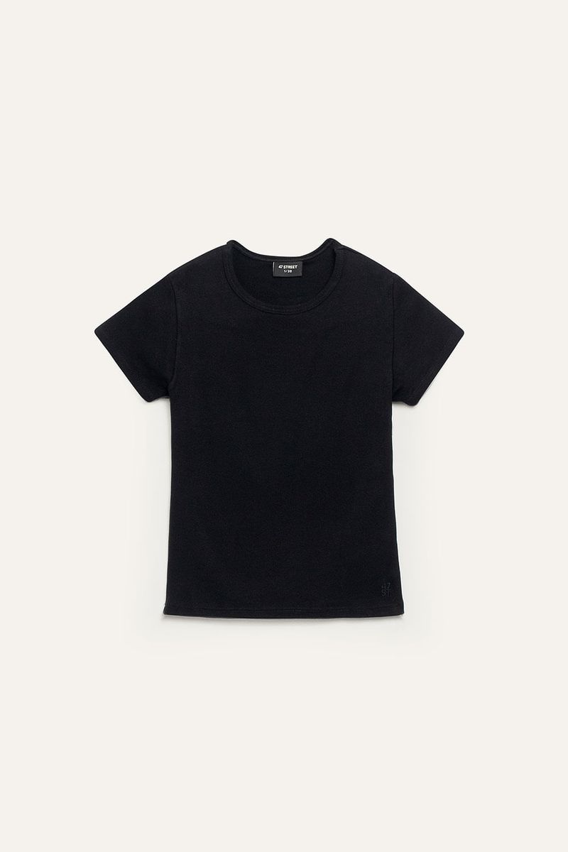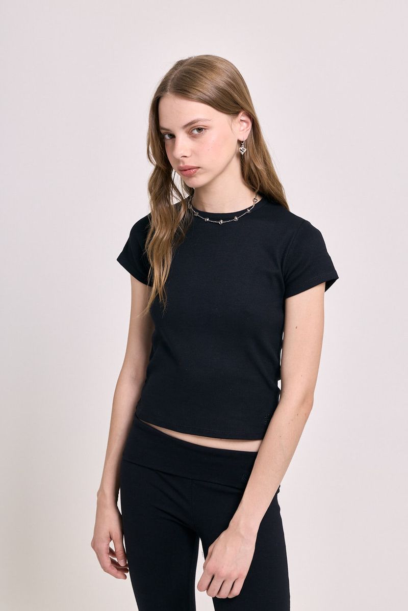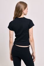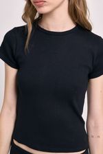 Remera de manga corta confeccionada en ribb elastizado, que se ajusta al cuerpo realzando la silueta con comodidad. El escote redondo la convierte en una prenda básica pero con mucha personalidad. Ideal para usar con jeans tiro bajo, faldas o como base para superposiciones.