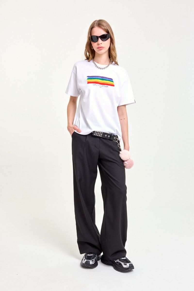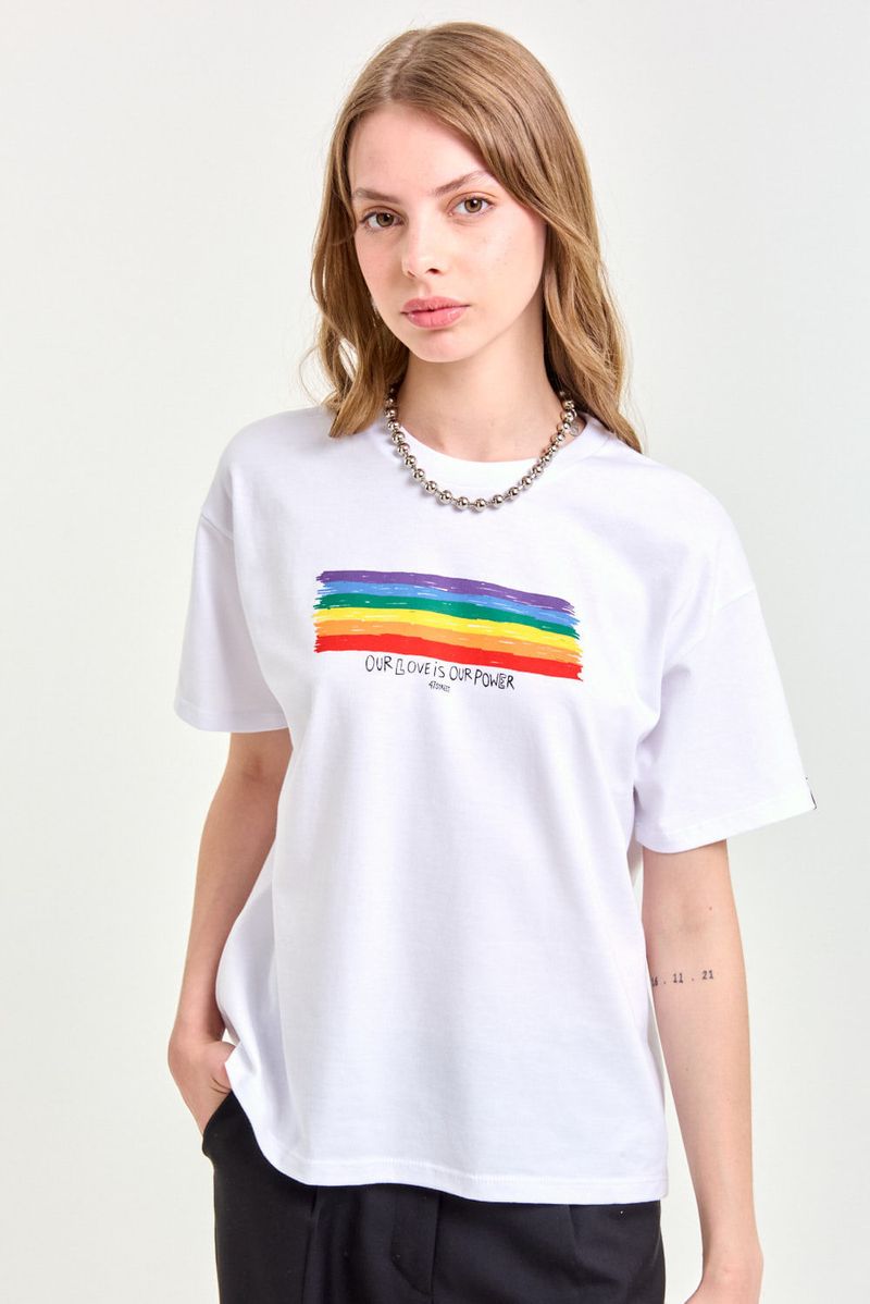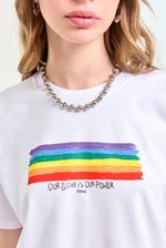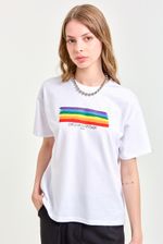Remera edición especial con estampa multicolor y mensaje de inclusión. Confeccionada en algodón suave y liviano, ofrece un calce cómodo y fresco. Ideal para looks con actitud.