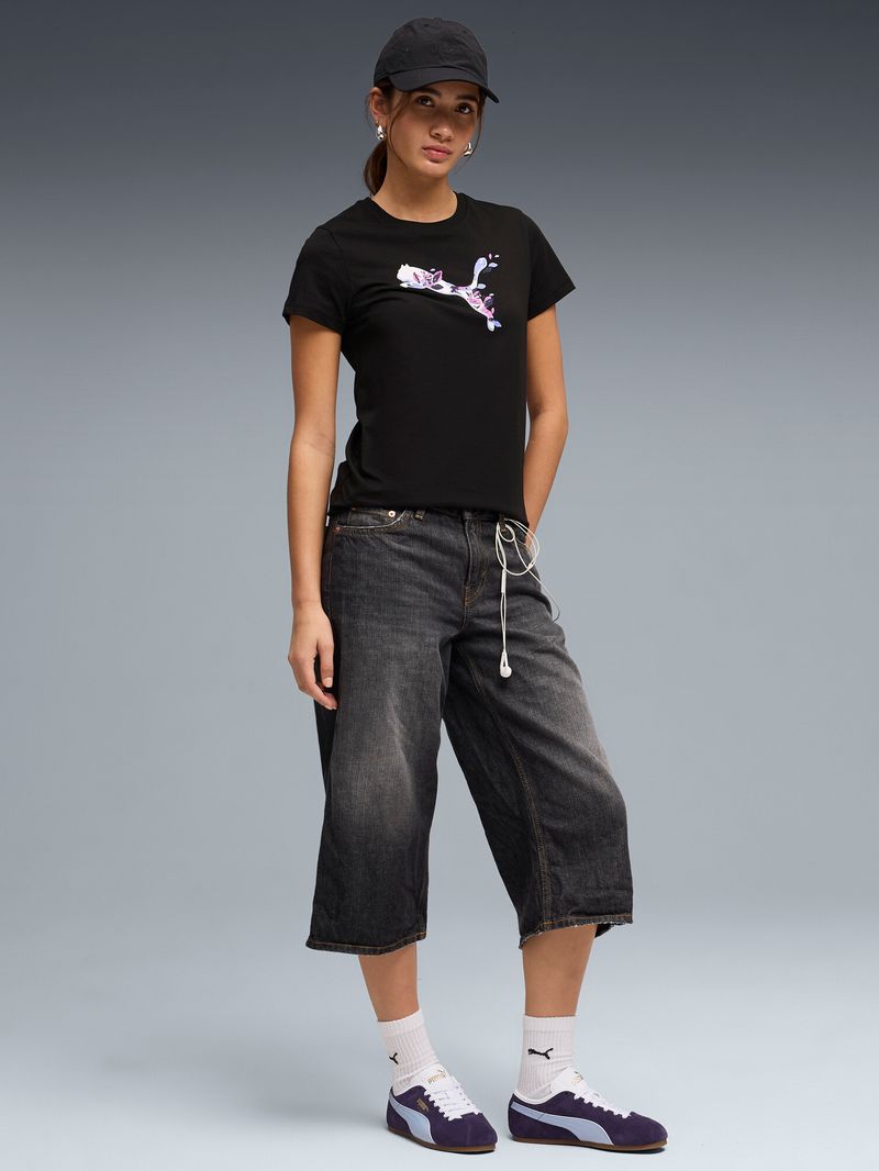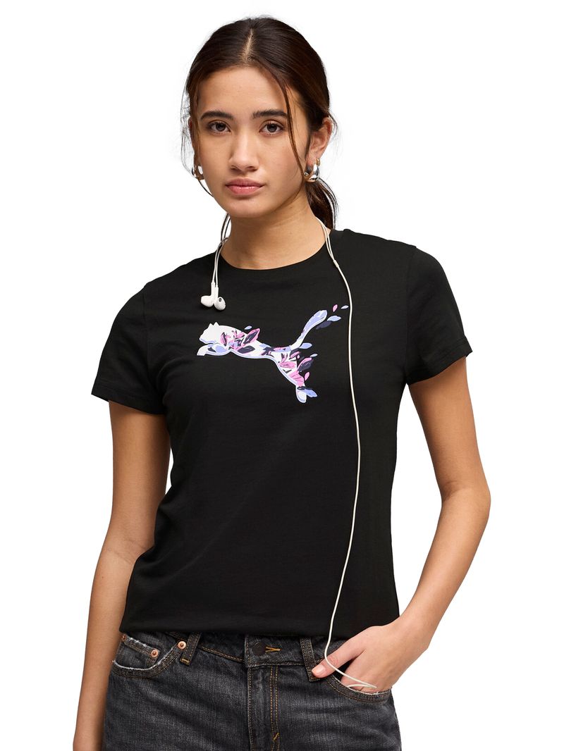 Remera Puma Graphics Floral Cat Sportstyle Mujer Moda Negro