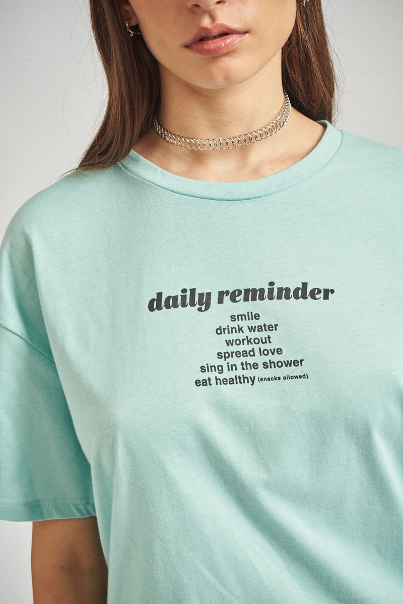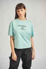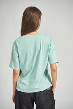 Remera cuello redondo manga corta de jersey 30/1. Cuello aplicado. Estampa centrada en frente. Largo a la primer cadera.