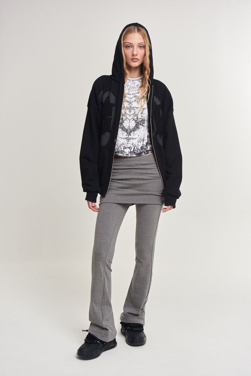 Remera manga ranglan de ribb, con detalle de costuras en sisas, cuello y cintura a tono de la estampa. Frente estampado.