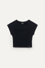 Remera manga corta de algodón con lycra. Cuello terminado con tapa costura. Esta molderia no posee sisas. Molderia al cuerpo. Largo por debajo de la cintura. Grifa institucional en ruedo izquierdo.