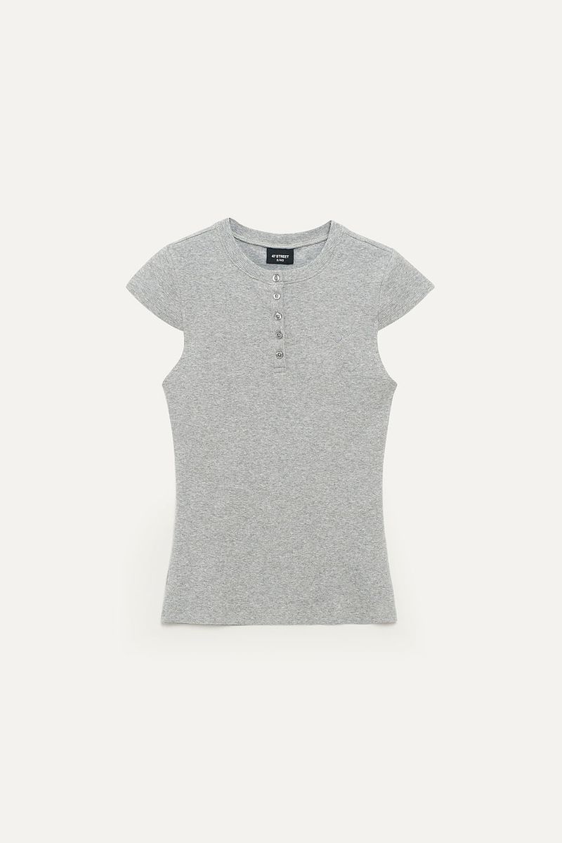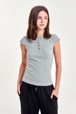 Remera fit de manga corta en algodón, con cartera de botones y logo bordado de la marca en el delantero. Calce al cuerpo, versátil y cómodo. Funciona genial con jeans de tiro bajo o shorts.