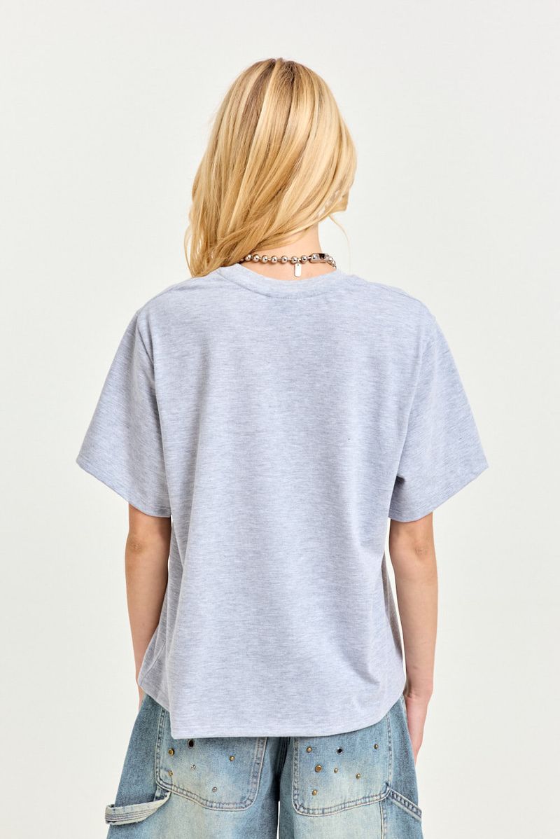 Remera de algodón liviano con cuello redondo aplicado y estampa en el frente. De calce relajado y estilo urbano, aporta frescura a tus outfits. Perfecta para combinar con un short de denim o un jogger y zapatillas.