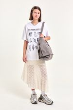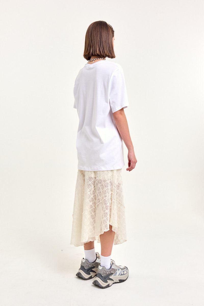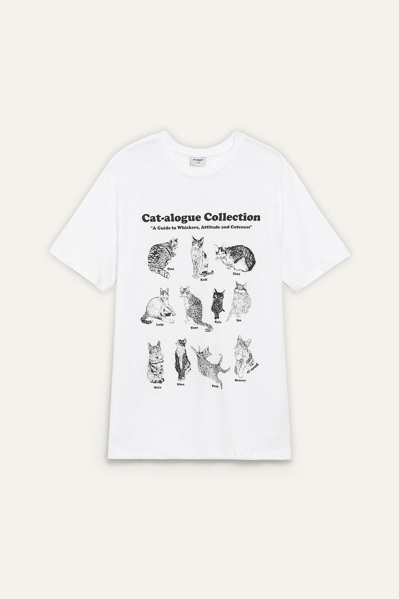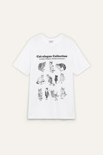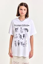 Remera manga corta de algodón con cuello redondo aplicado y calce oversize. Lleva estampa frontal. Ideal para usar con pantalones parachute o shorts.