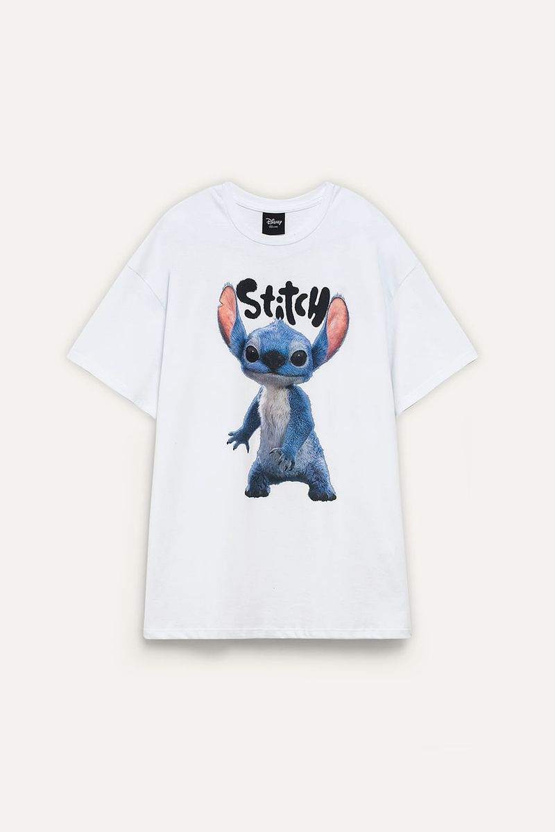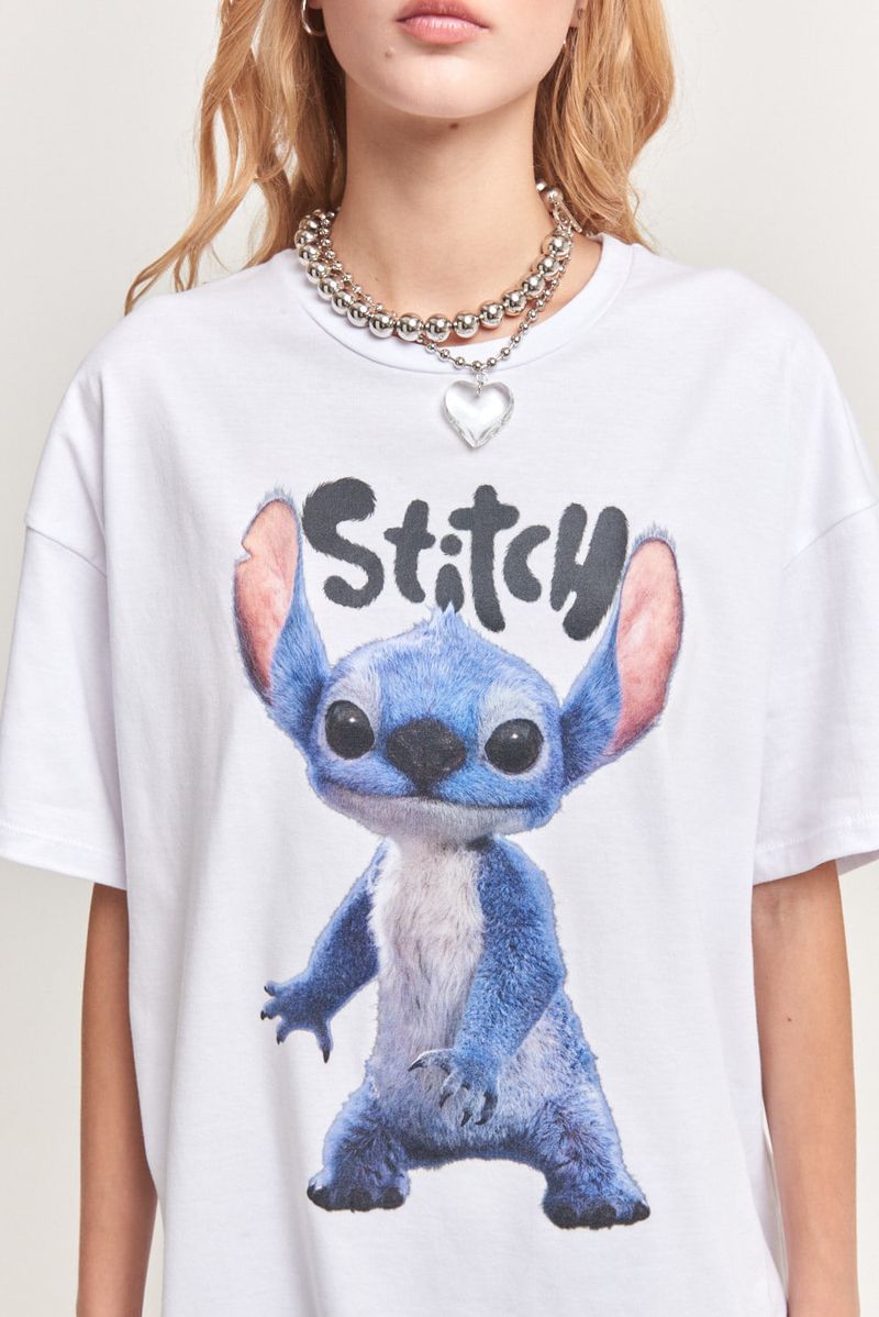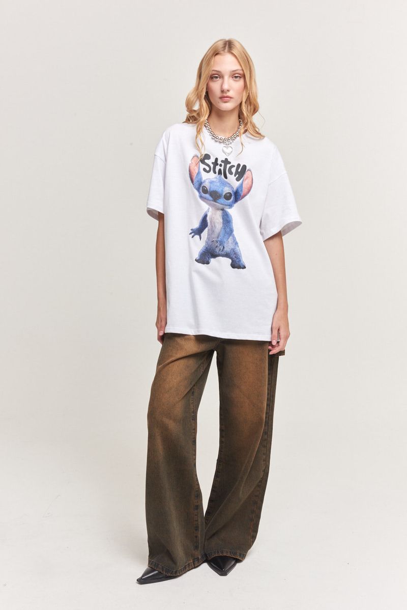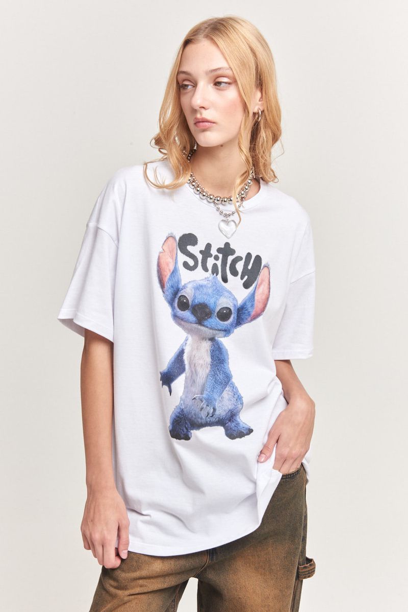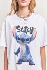 Remeron oversized manga corta de algodón con estampa en el frente de Licencia Stitch. Grifa de marca en ruedo.