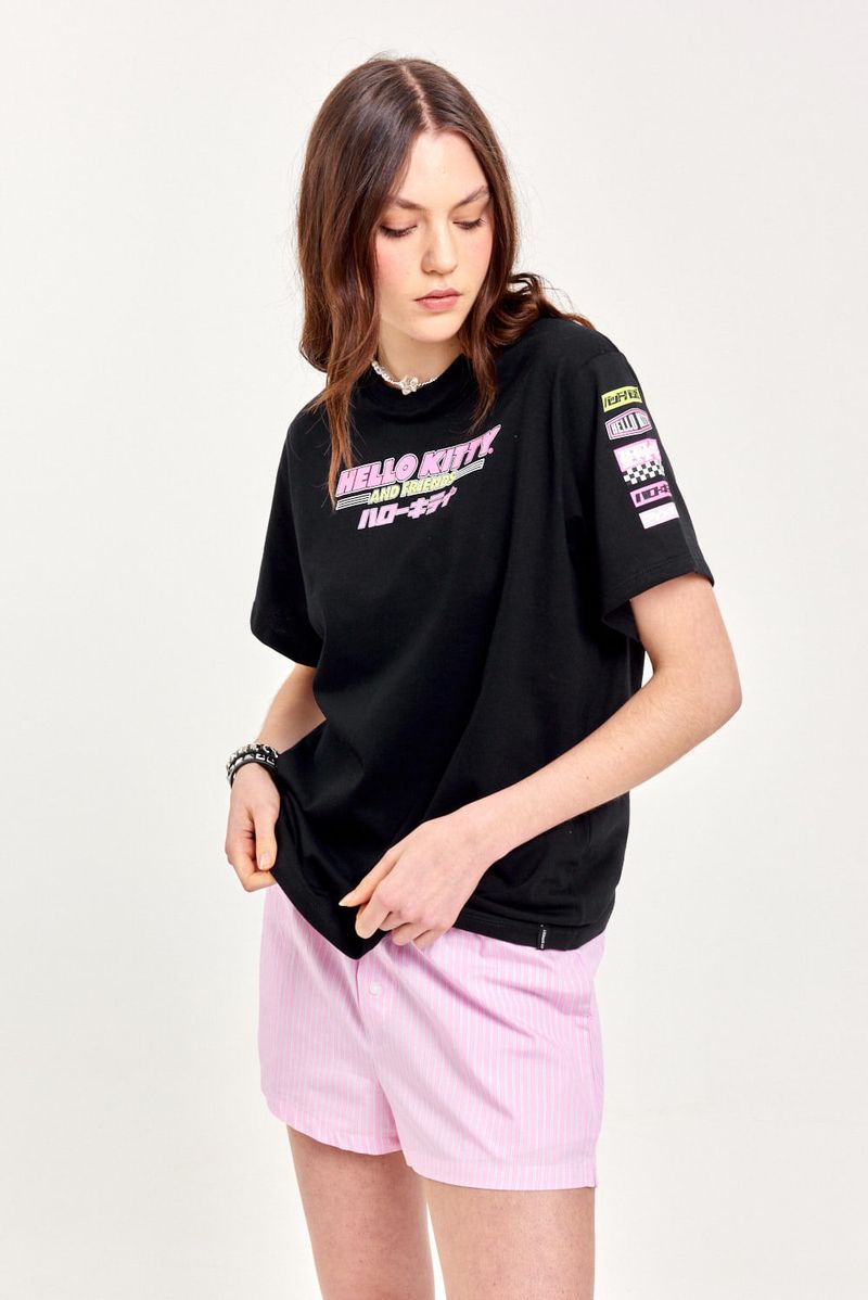 Remerón con cuello de ribb y estampa de Kitty amigxs al frente y en espalda. Su calce oversized y mangas amplias lo hacen ideal para un look relajado con mucha actitud.