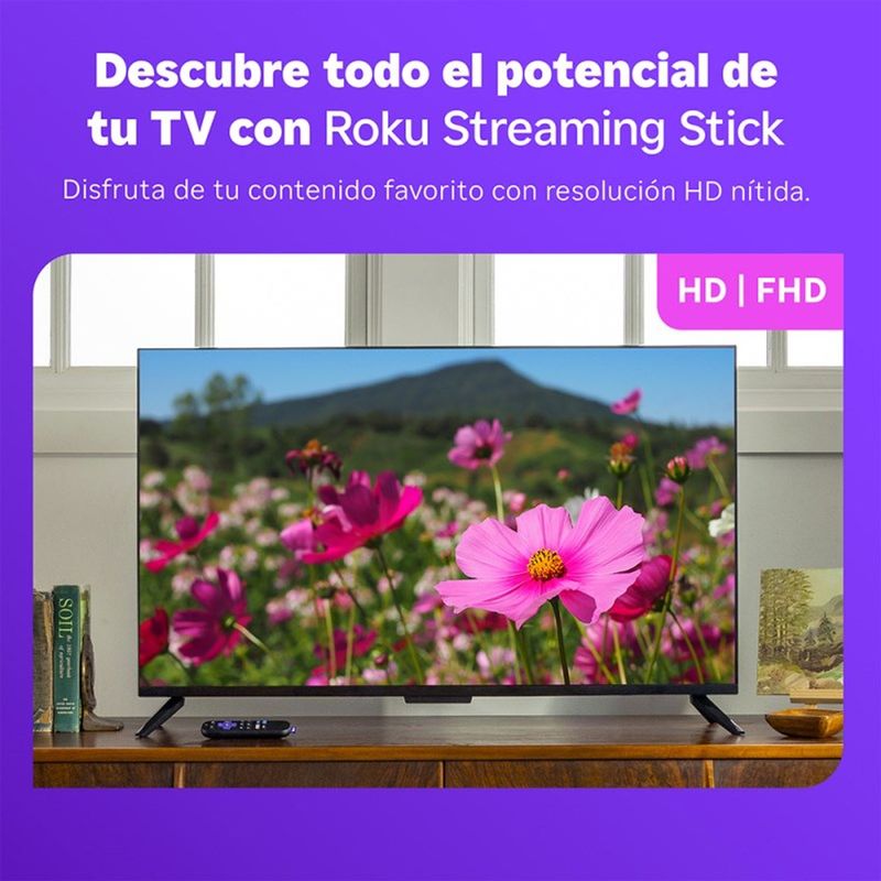 Roku Streaming Stick 2025 3840MX - Dispositivo de streaming HD para TV - Compatibilidad de imagen con TVs HD - Resoluci¦nn compatible: Hasta 1080p (1920 x 1080), con ampliaci¦nn desde 720p - Conectividad Wi-Fi de doble banda 802.11b/g/n (2.4 GHz / 5 GHz) - Puertos: HDMI integrado, USB (para alimentaci¦nn) - Funciones de audio: Est¦+reo digital a trav¦+s de HDMI DTS Digital Surround a trav¦+s de HDMI Admite audio codificado Dolby por HDMI - Control remoto: Control remoto por voz - Botones: encendido, volumen, silenciar - Compatible con la mayor¦_a de TVs actuales (botones de volumen y encendido) - Compatibilidad con asistentes de voz: Roku Smart Home Apple AirPlay y HomeKit Google Home Alexa - Consumo de energ¦_a: Aproximadamente 2.2 W (en reproducci¦nn HD) - Dimensiones y peso Reproductor (fuera de caja): Ancho: 21 mm Alto: 11.5 mm Profundidad: 94 mm Peso: 23g Control remoto: Ancho: 42 mm Alto: 20 mm Profundidad: 140 mm Peso: 52g Dimensiones de la caja individual: Ancho: 84 mm Alto: 146 mm Profundidad: 38.5 mm Peso: 146.4g Bater¦_a (AAA alcalina): Largo: 44.5 mm Di¦¡metro (profundidad): 10.5 mm Peso: 9g Voltaje: 1.5 V Tipo: Alcalina AAA -Contenido de la caja Roku Streaming Stick Control remoto por voz Cable de alimentaci¦nn USB-C a USB-A Dos bater¦_as/pilas AAA - Modelo:3840MX - Garantia: 6 meses - Pais de origen: Vietnam