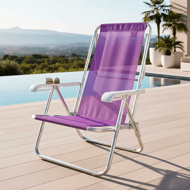Disfrutá del aire libre con una reposera liviana, cómoda y súper resistente. Su estructura de aluminio y su sistema reclinable de 8 posiciones la hacen ideal para la playa, el jardín o la pileta. Además, cuenta con apoyabrazos plásticos para mayor confort.