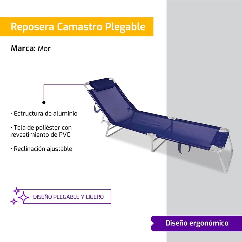Reposera Camastro Plegable 4 Pos Aluminio Mor Azul Marino