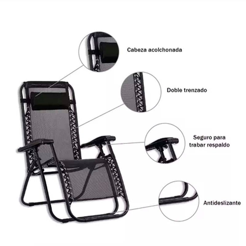 - Sistema reclinable gravedad cero: Ajustá y trabá la posición que prefieras para experimentar una sensación de ingravidez y relax inigualable.