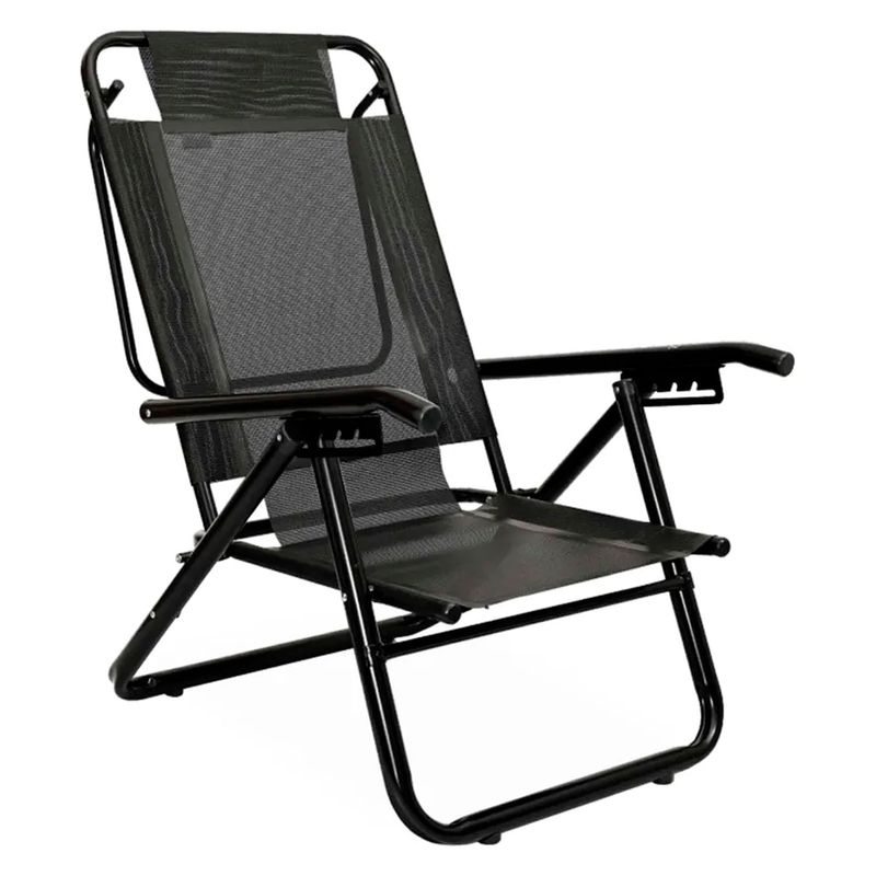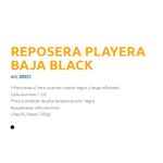 XL súper resistente que soporta hasta 130 kg. Su estructura de aluminio 1 1/4” con pintura poliéster de alta resistencia garantiza durabilidad, mientras que la lona Coversol tropical negro y beige ofrece comodidad y firmeza. Además, cuenta con