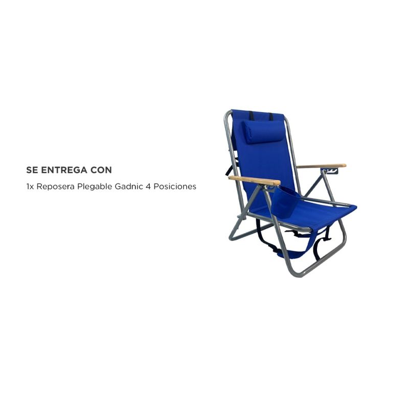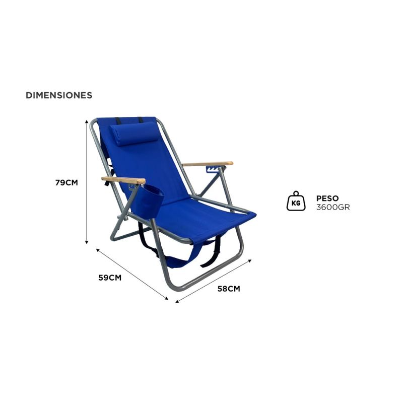 Incluye portavasos lateral, almohadilla desmontable para el cuello y un bolsillo especial para guardar objetos pequeños como celular, protector solar, anteojos o libros. Todo pensado para que tengas lo que necesitás al alcance de la mano.